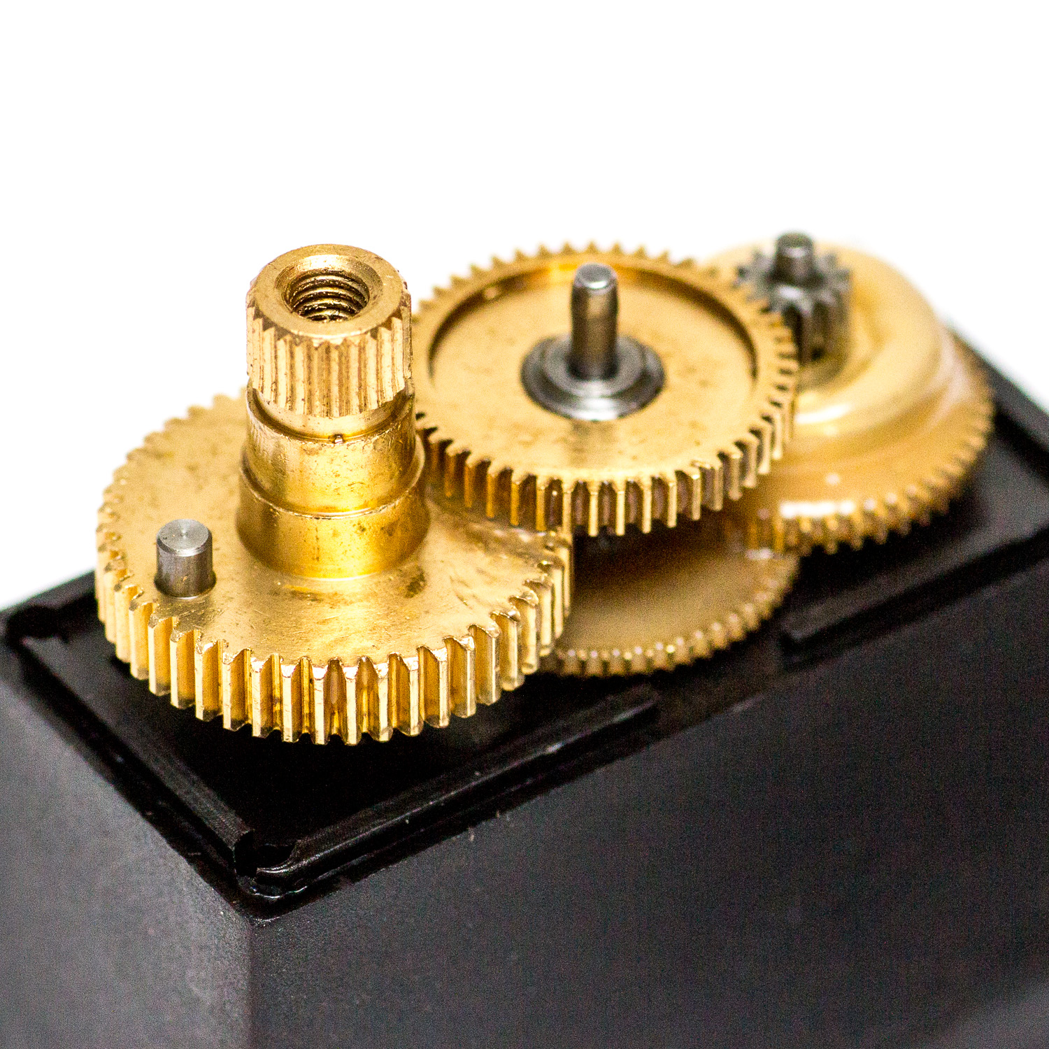 Ett mycket kraftfullt servo med kugghjul gjorda av metall.