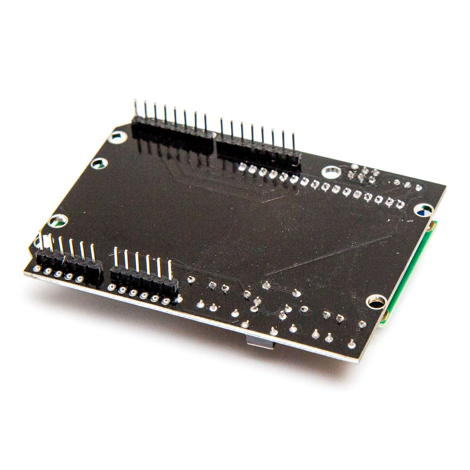 En Arduino shield med en alfanumerisk LCD-skärm som kan visa två rader text med 16 tecken vardera. Skärmen har vit text på blå bakgrund och den är upplyst så den går att läsa även när det är helt mörkt. Skärmens kontrast mellan text och bakgrund kan ställas in med ett litet vridmotstånd. Shielden använder anslutningarna D4-D9 för skärmen och kommunikationen sker via 4-bits parallellt gränssnitt som är standard för i princip alla alfanumeriska displayer. Förutom skärmen så har shielden även sex tryckknappar som läses av via A0 som en analog signal. Varje knapp är kopplad till varsitt motstånd som ger varje knapp en unik spänning som läses av med Arduino-kortets A/D-omvandlare.